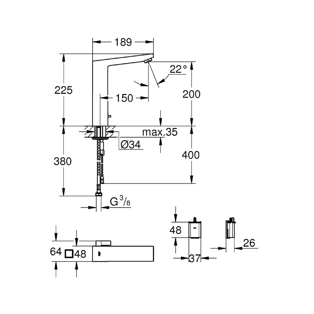 Max. tabletdikte voor kraaninstallatie | 30 mm | |