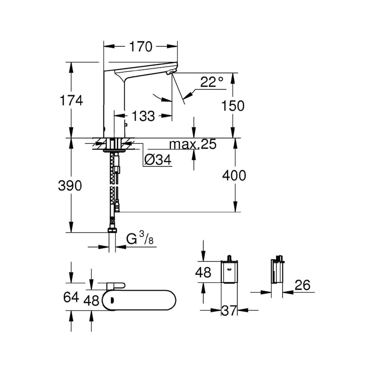 Max. tabletdikte voor kraaninstallatie | 30 mm | |