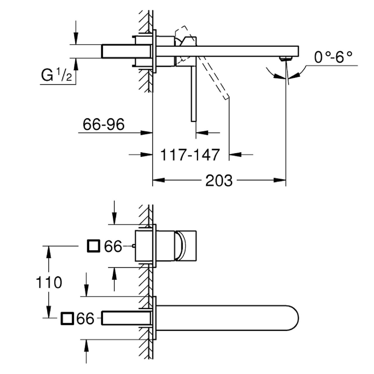Lengte uitloop (zie maattekening) | 203 mm | |