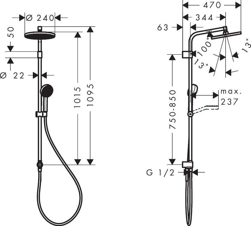 Deze regendoucheset is ook in andere kleuren beschikbaar.
