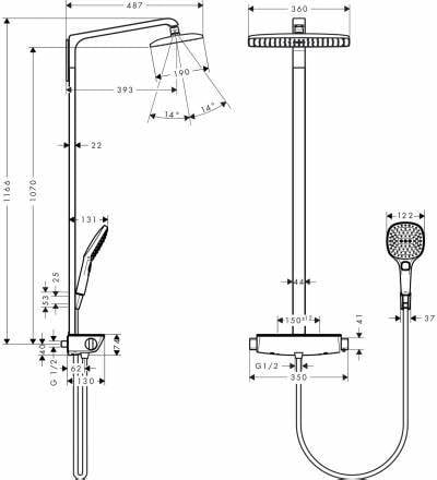 Deze regendoucheset is ook beschikbaar in andere afmetingen.