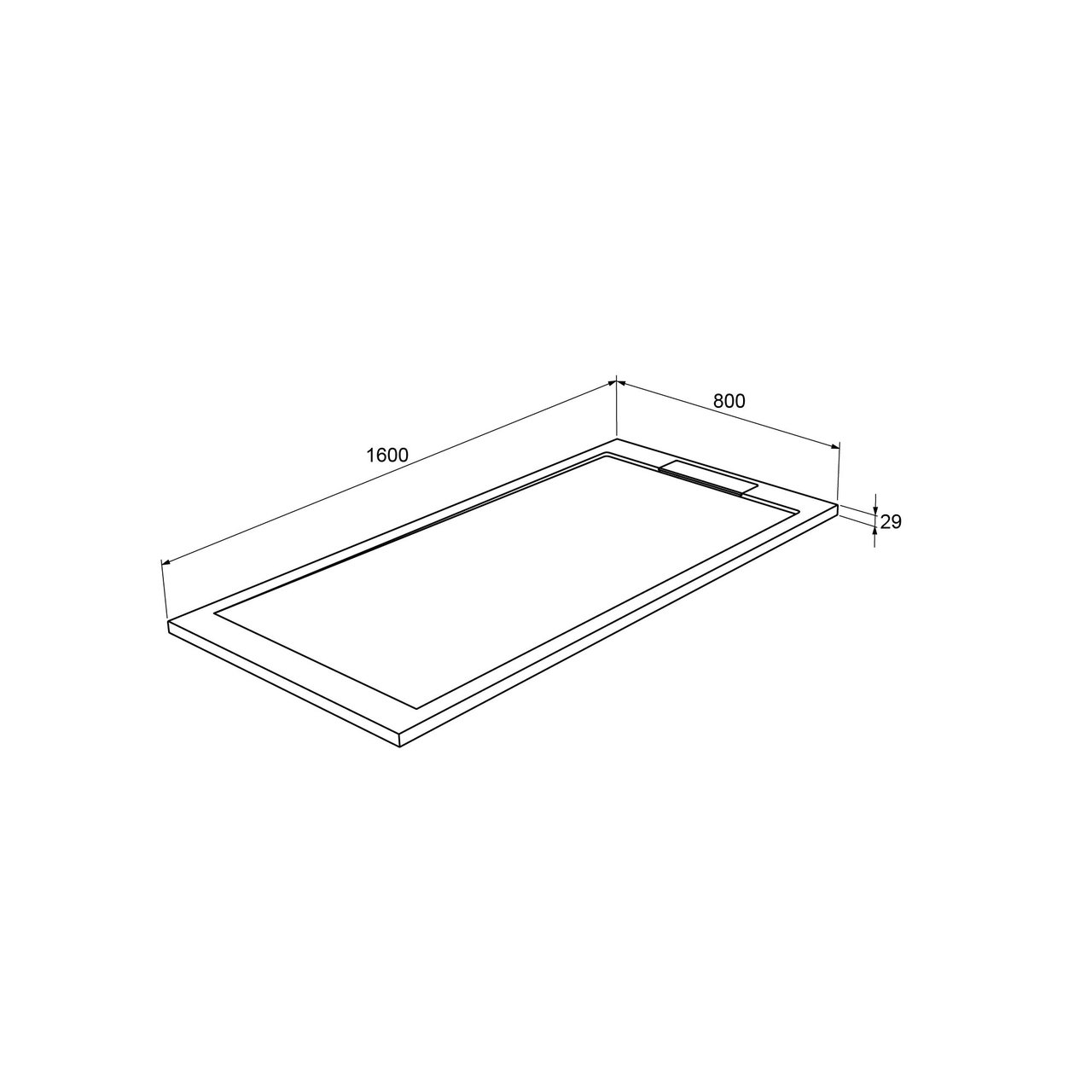 Deze douchebak is 80 cm breed op 160 cm lang.