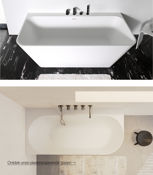 Compacte woonruimtes bepalen voor een groot deel de architectuur van vandaag. Bijgevolg groeit ook de vraag naar slimme en ruimtebesparende badoplossingen. Een hoekbad en halfvrijstaand bad plaats je steeds in de hoek of tegen de muur van je badkamer. Voeg tot slot een badwand toe aan je bad en creëer een handige bad-douchecombinatie. Op deze manier benut je elke centimeter van je badkamer optimaal!