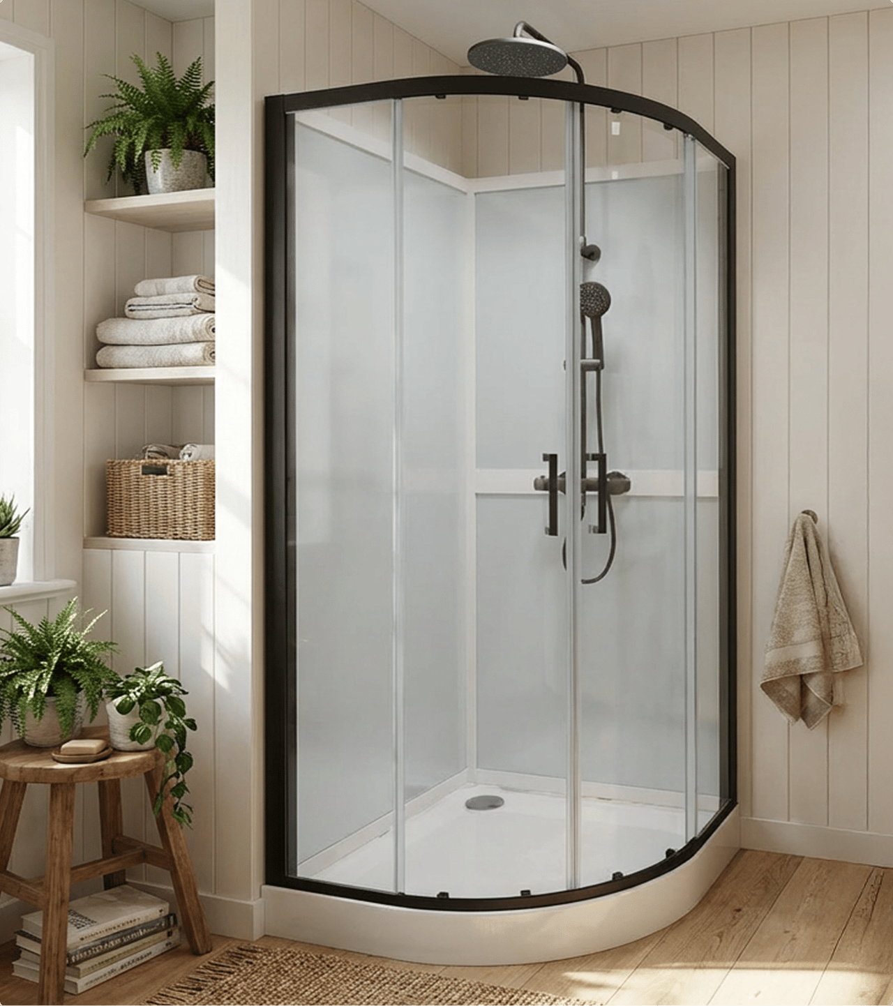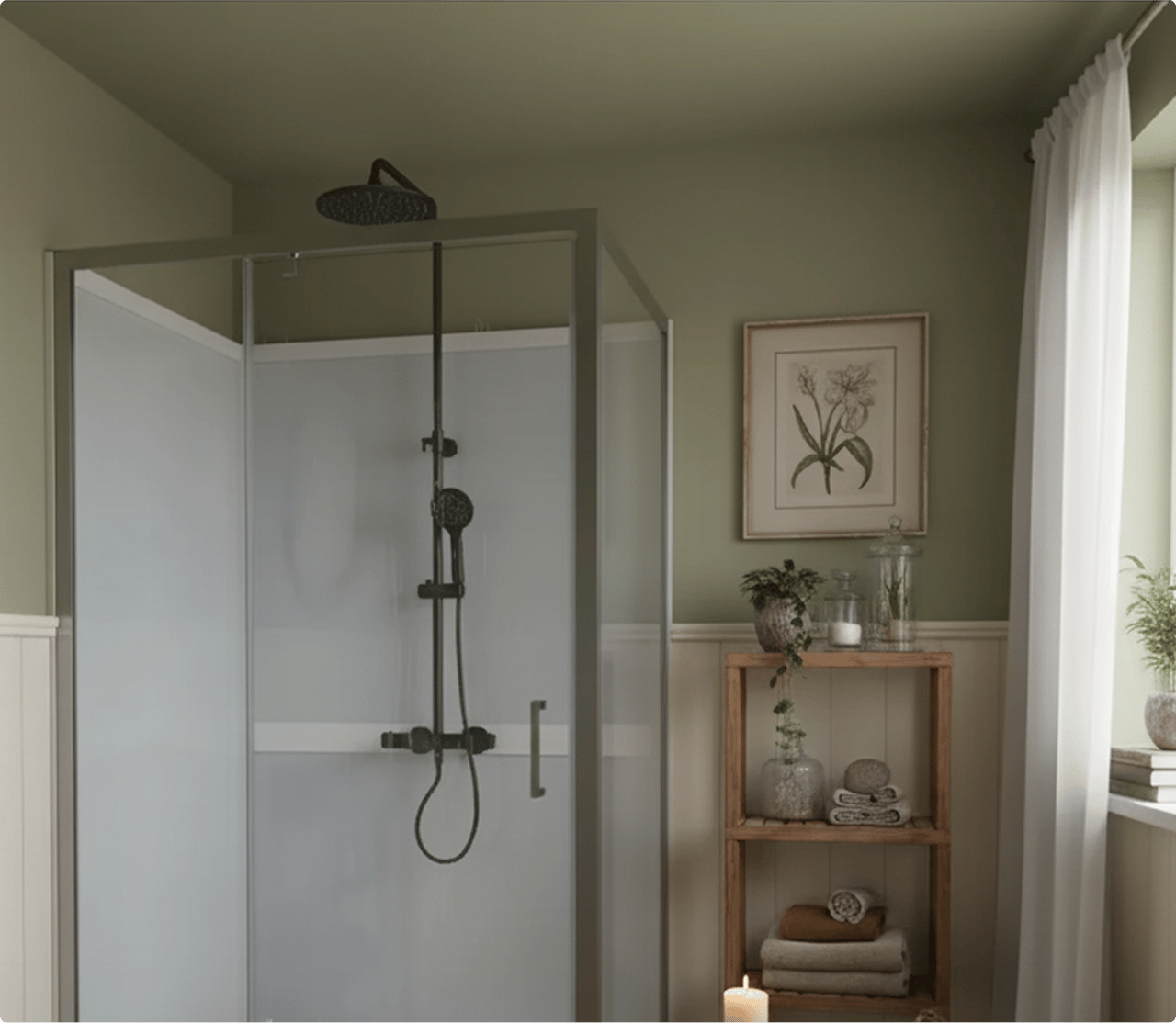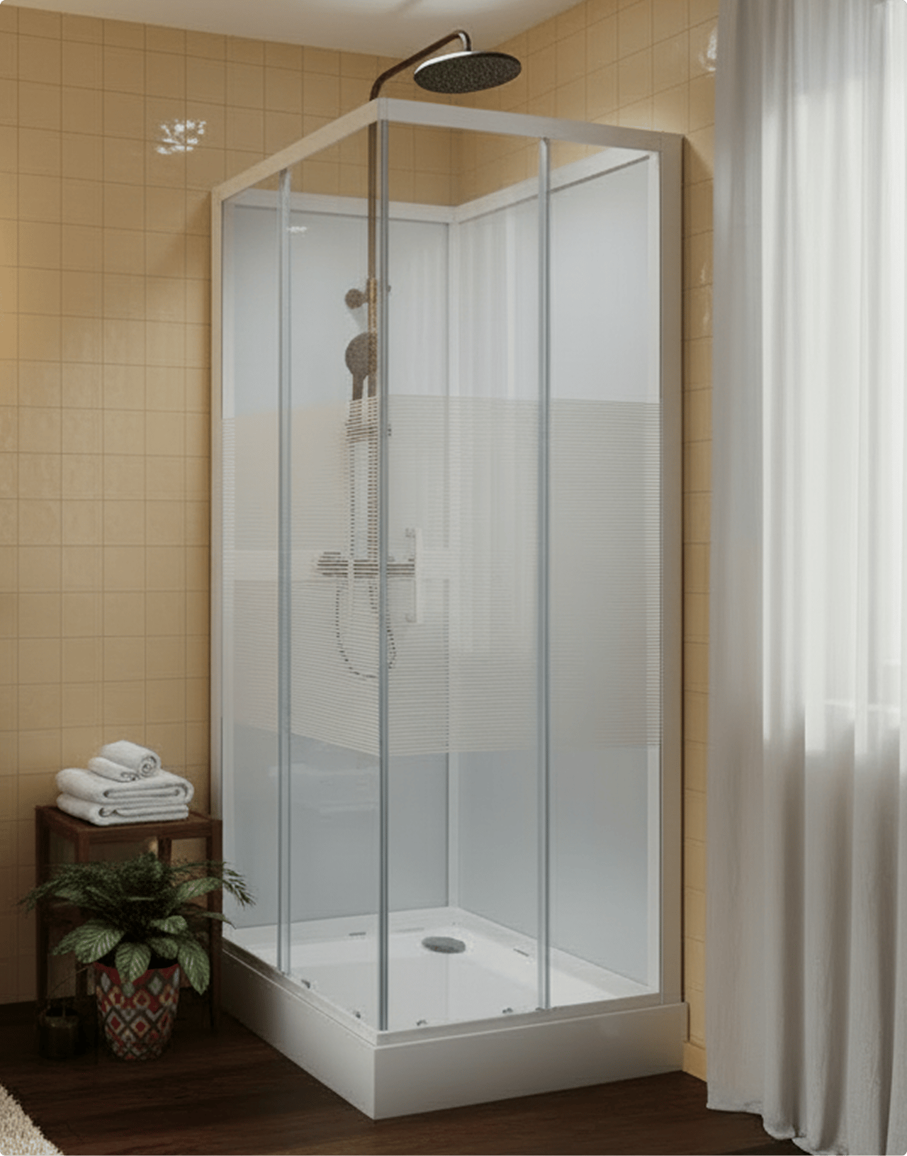 Kan minder ruimtelijk aanvoelen dan een open douche: In kleinere ruimtes of bij een voorkeur voor openheid kan een volledig afgesloten douchecabine visueel of functioneel meer gesloten aanvoelen.