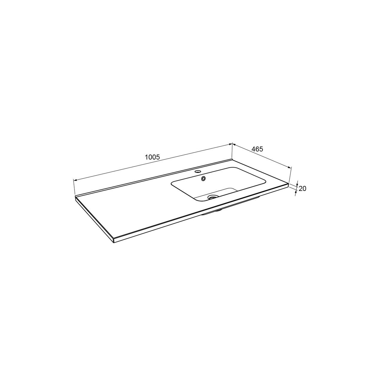 Deze composiet wastafel met geïntegreerde waskom heeft een breedte van 100 cm, een diepte van 46 cm en een randhoogte van 2 cm. Deze Hoogglans Wit wastafel past in elke badkamer door zijn strakke afwerking.