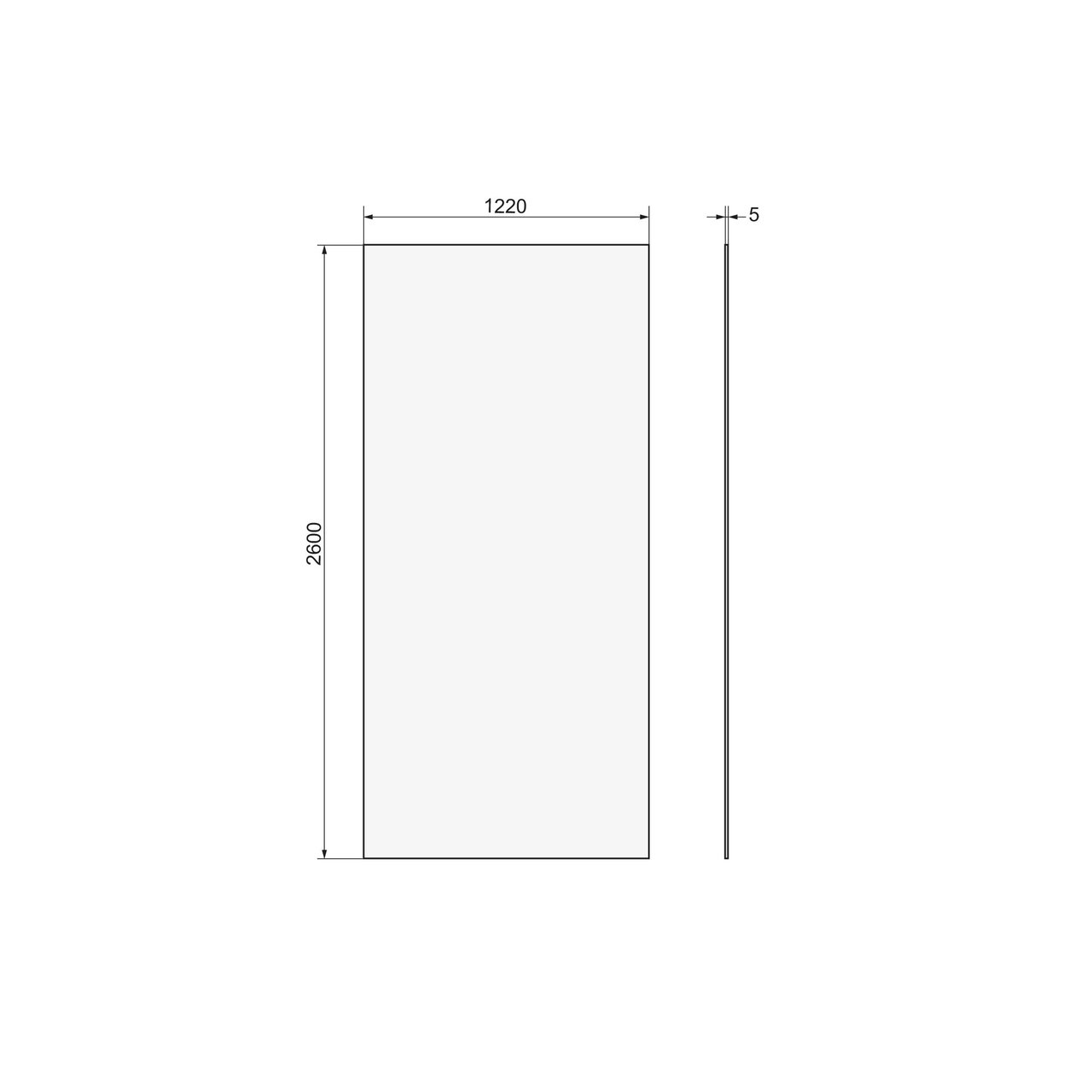 Dit douchewandpaneel is 122 cm breed en 260 cm hoog.