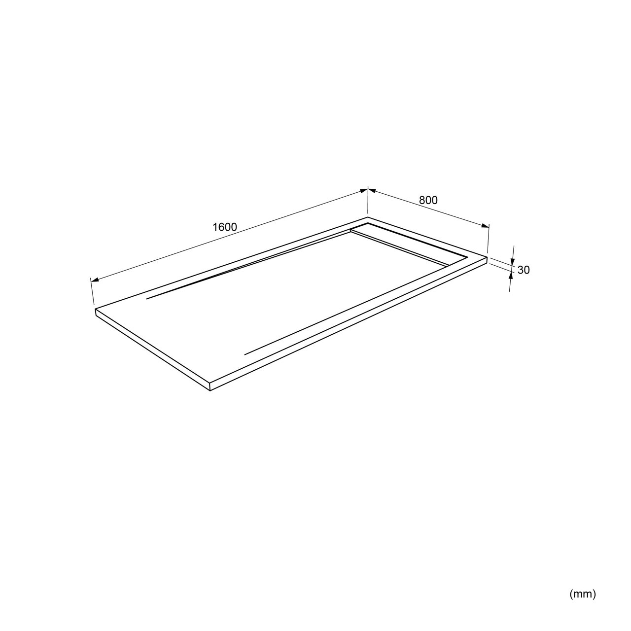 Deze douchebak is 80 cm breed op 160 cm lang.