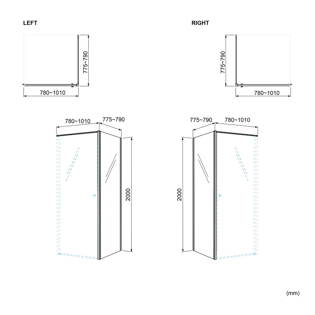 Deze douche zijwand is 80 cm breed en 200 cm hoog.