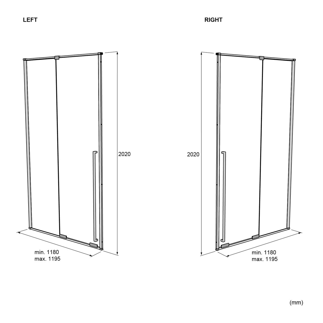 Regelbereik breedte douchedeur | 118 - 119,5 cm | |
