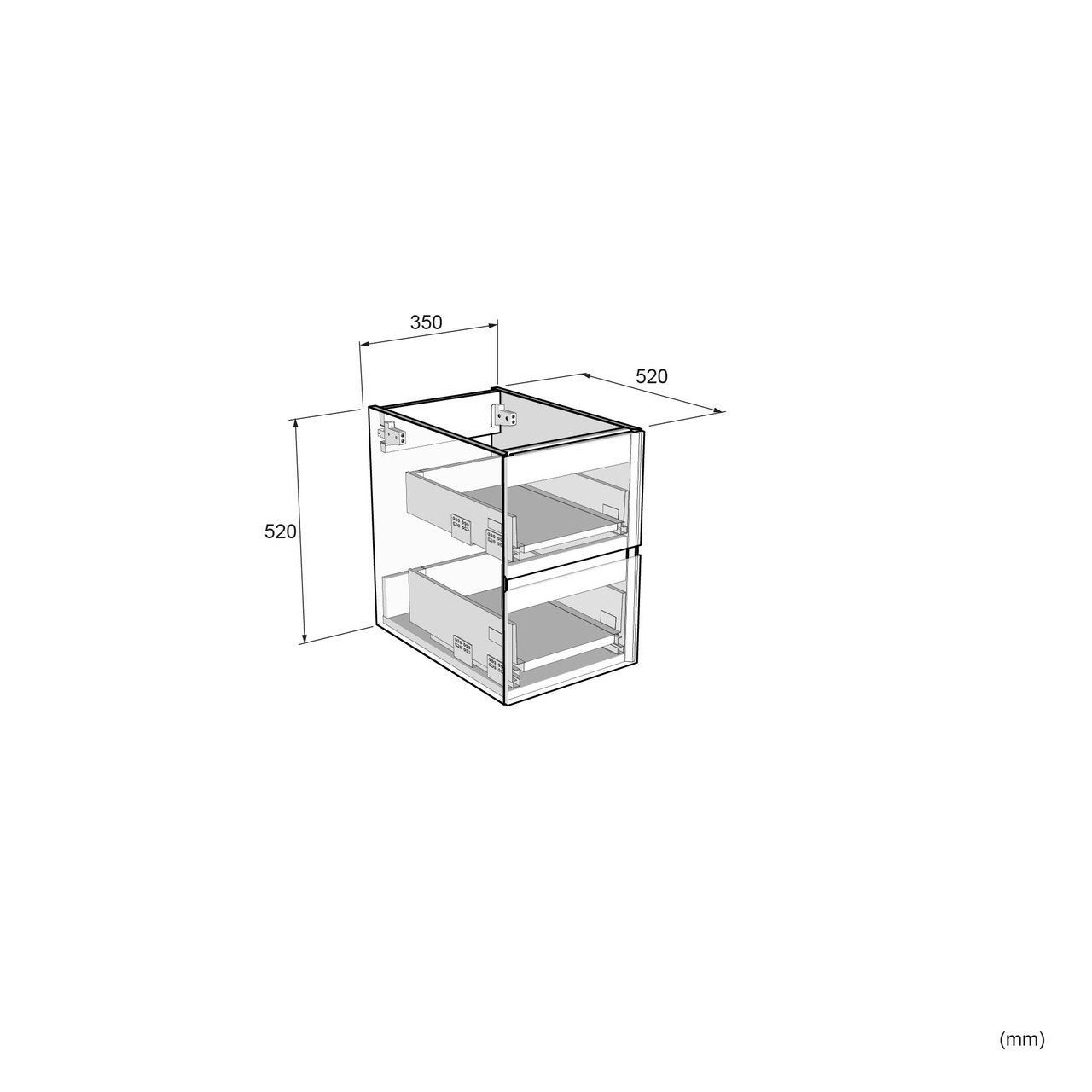 Deze melamine wastafelonderkast met 2 lades heeft een breedte van 35 cm, een hoogte van 52 cm en een diepte van 52 cm. Deze zwevende kast in ruwe eik past in elke badkamer door zijn strakke afwerking.