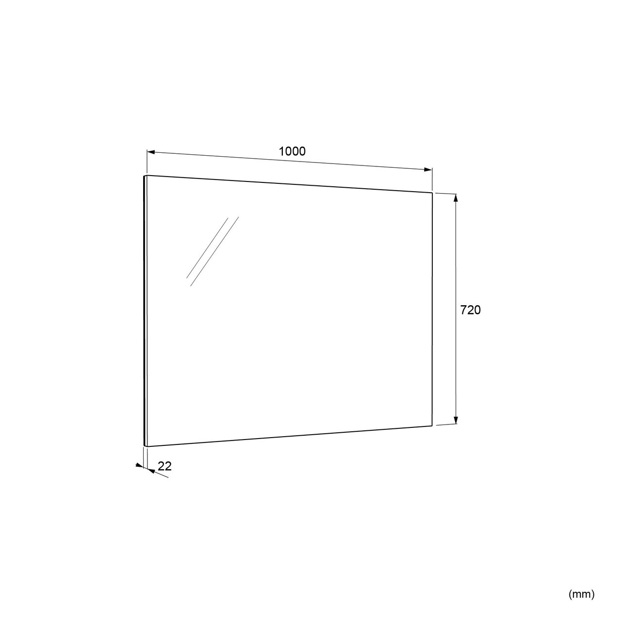 Dit rechthoekig spiegelpaneel heeft een breedte van 100 cm en een hoogte van 72 cm. De spiegel past in elke badkamer door zijn eenvoud.