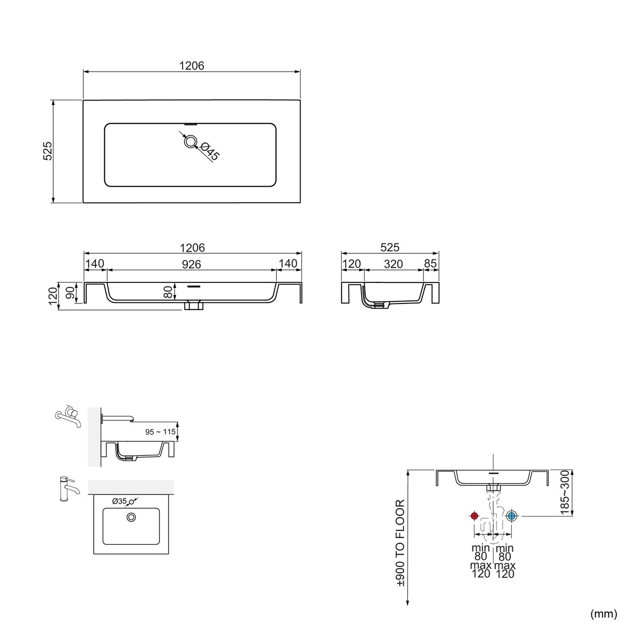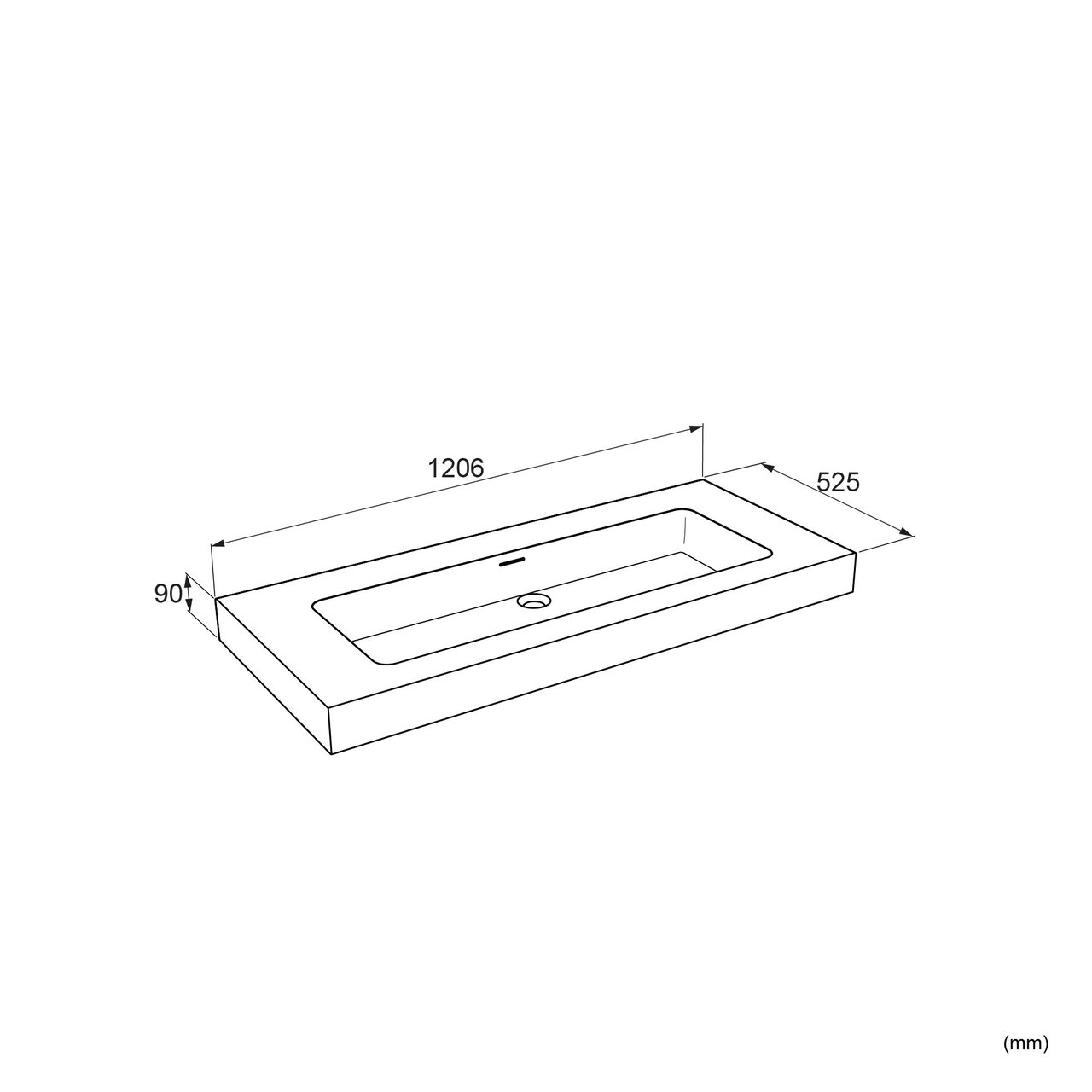 | Afmetingen | 120 x 52 cm (Enkele wastafel voor 2 kraangaten) | |