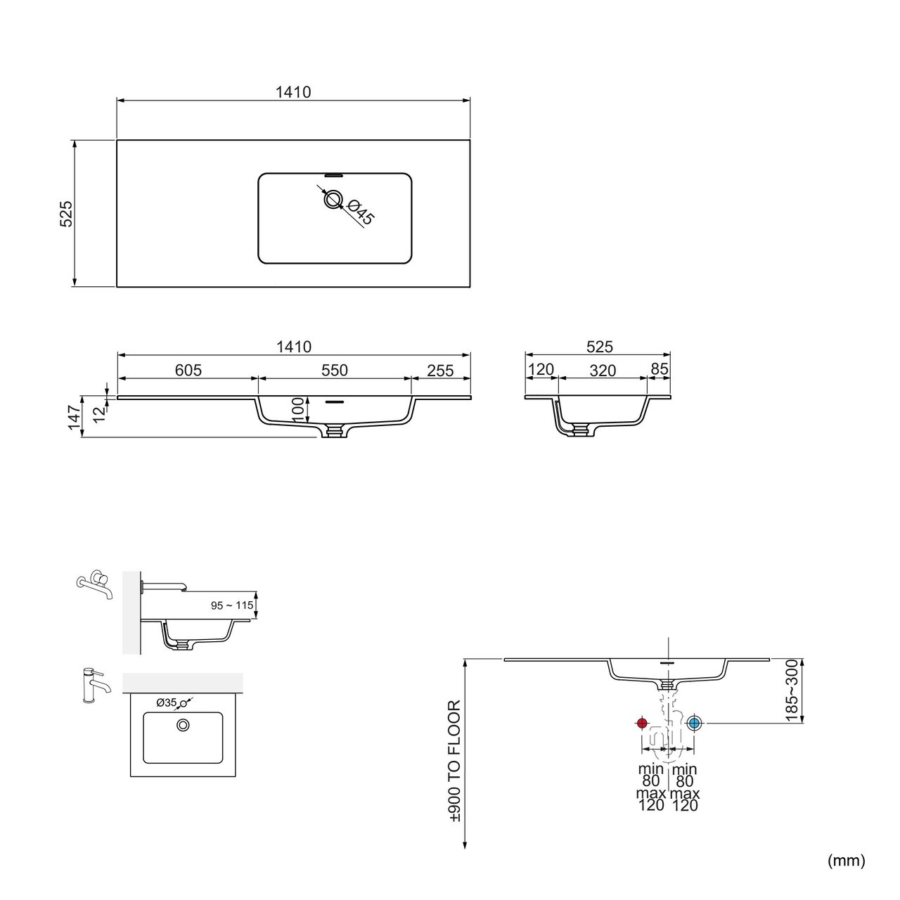 Deze wastafel is ook beschikbaar in andere afmetingenen in een variant met randhoogte 9 cm.
