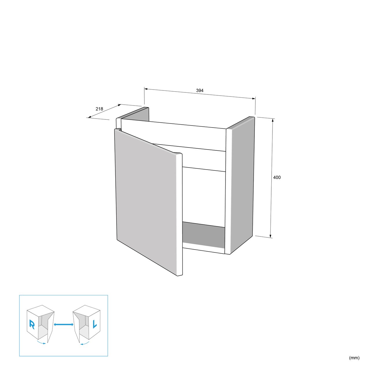 Deze melamine toiletmeubelkast met 1 draaideur heeft een breedte van 40 cm, een hoogte van 40 cm en een diepte van 22 cm. Deze zwevende kast in ruwe eik past in elke toiletruimte door zijn strakke afwerking.