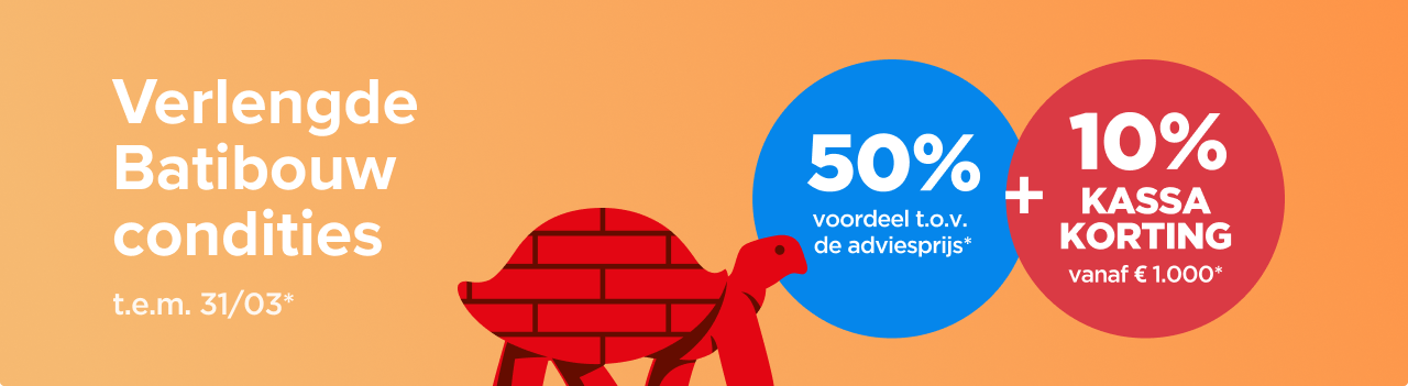 Gedurende de hele maand maart profiteer je van 50% voordeel ten opzichte van de adviesprijs op bijna alles. En daar stopt het niet: bovenop deze korting krijg je nog eens 10% kassakorting* bij een aankoop vanaf €1.000.