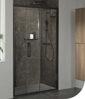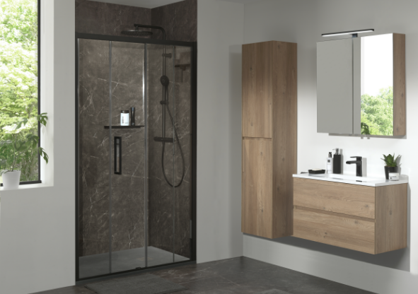 ✔ Ruime douche – Comfortabele instap dankzij de glazen schuifdeur.